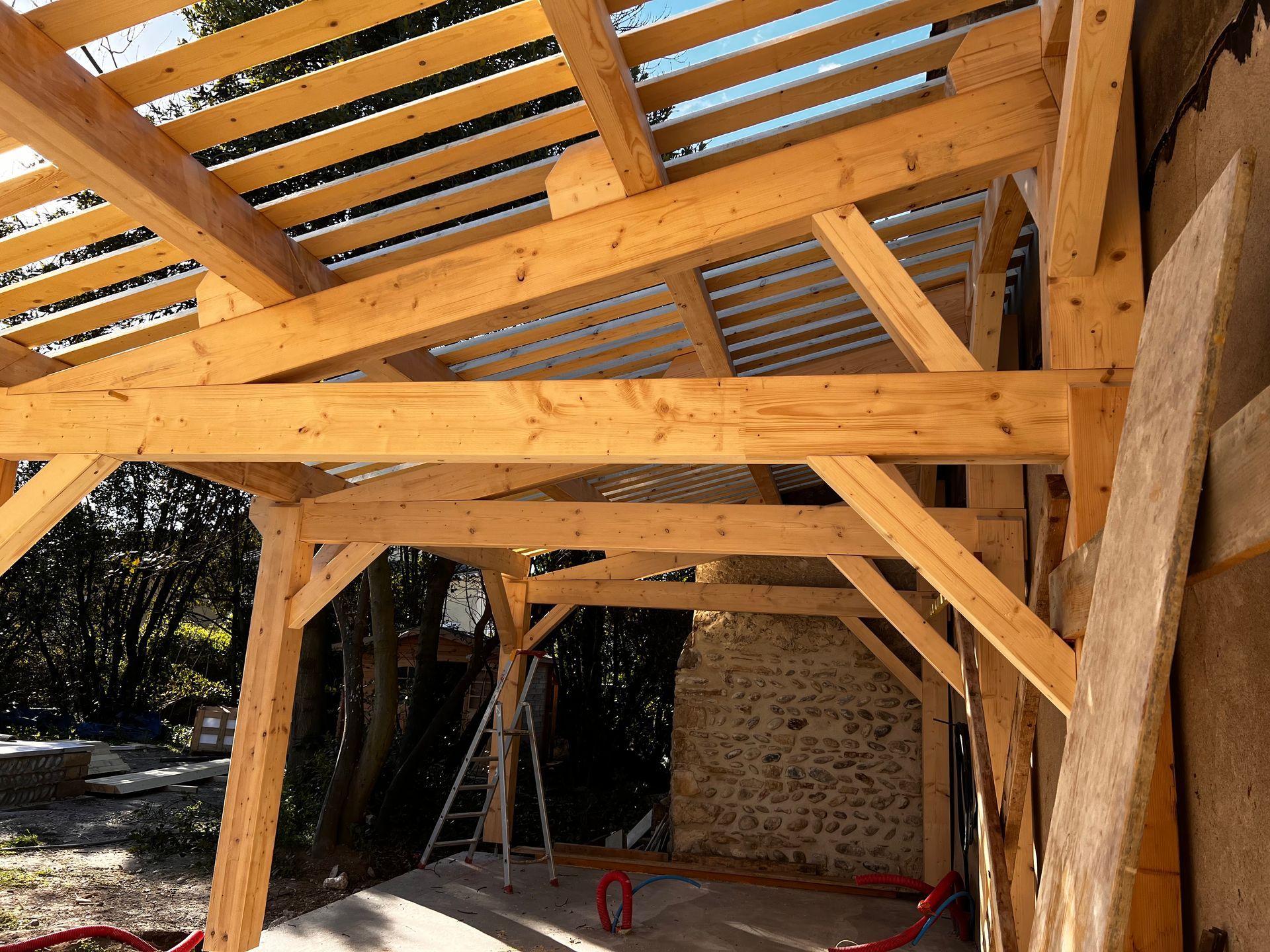 - Les travaux de charpente : traditionnelle ou fermettes, la charpente est un pilier essentiel garantissant la stabilité et la solidité de votre couverture de toiture.